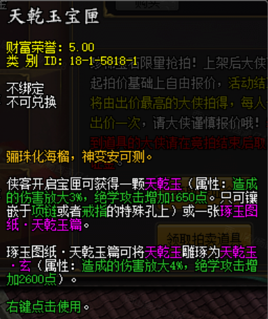 一年一度的年末超值折扣拍卖庆典即将开启!寻找西域客商,参与抢购盛典!珍贵的魂玉、宠物装备、神兵、天乾玉、地坤石等稀世珍宝!手快有,手慢无,好价不等人!