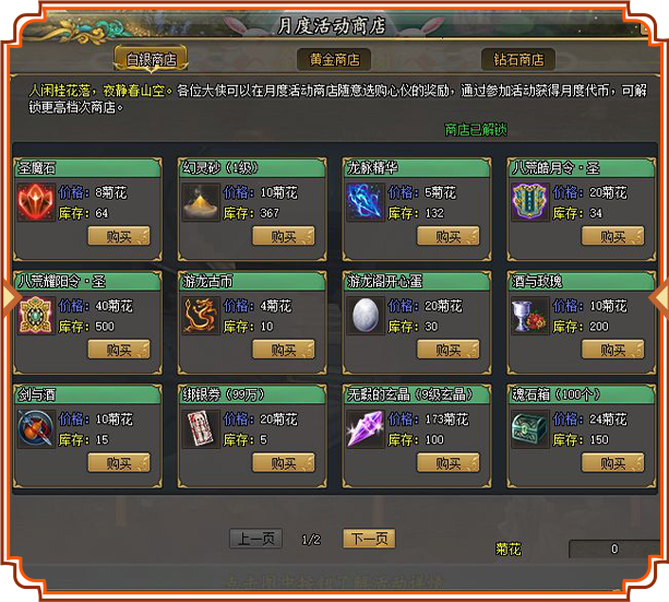 活动专用货币,参加活动即可获得。在活动商店购买各类道 |