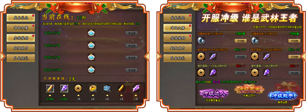 2、新服【龙战于野】开服后,大侠前往各大新手村NPC古枫霞处,即可兑换激活码,领取丰厚的新服VIP礼包奖励!