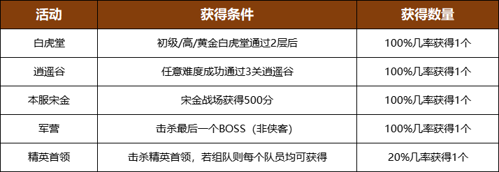 11月4日维护结束后-11月10日23:59,开服时间达到180天及以后的服务器,于游戏内参加活动,可获得武道会人气卡,每天最多获得5张,有效期为30天。