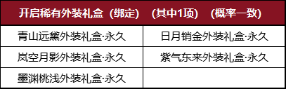 5、通过本次活动,获得的所有稀有礼盒皆为绑定,外装的时限皆为永久。
