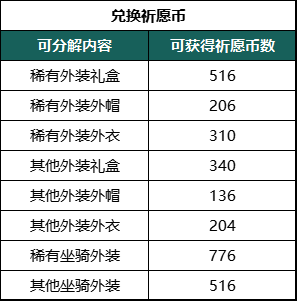*备注:可兑换祈愿币的外装,仅限本次通过霓裳祈梦活动获得的外装。