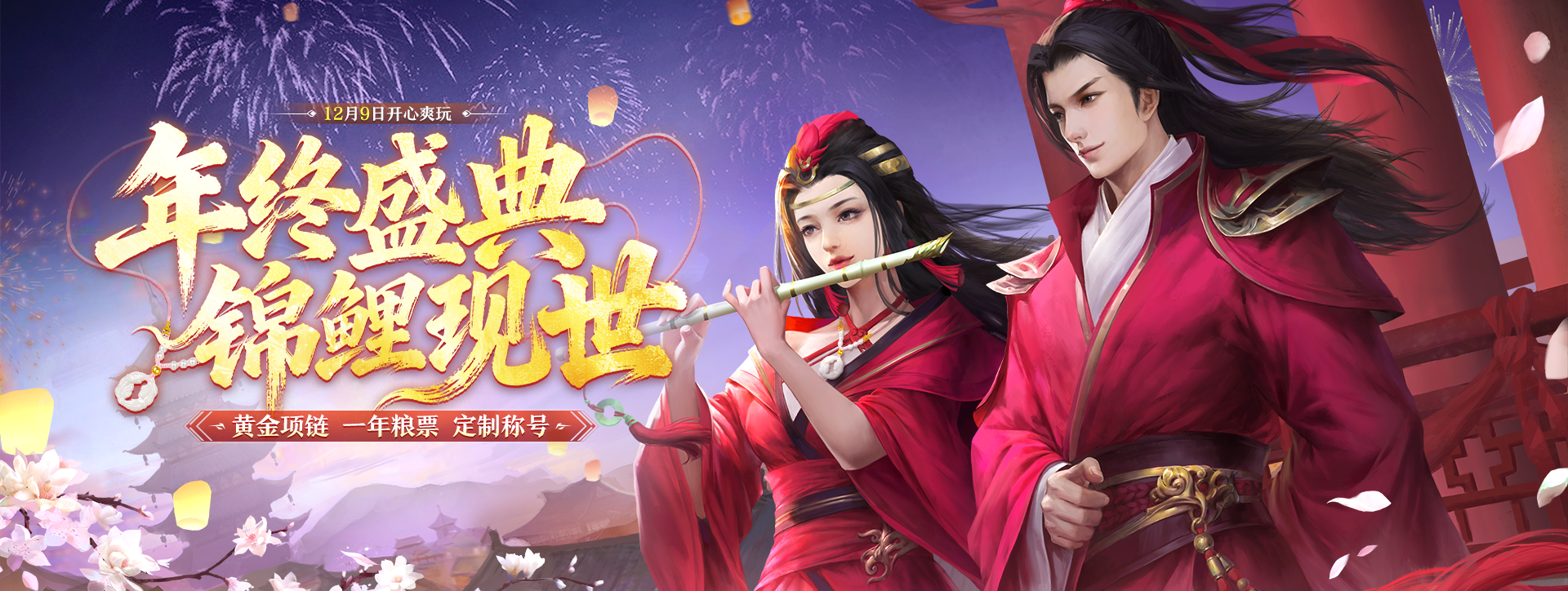 2、12月9日-12月22日,每晚21:00,系统将会从当日购买了庆典活动礼包的大侠当中随机抽取1名“每日锦鲤”中奖者,可获得定制剑侠锦鲤称号和未来1年的游戏粮票。